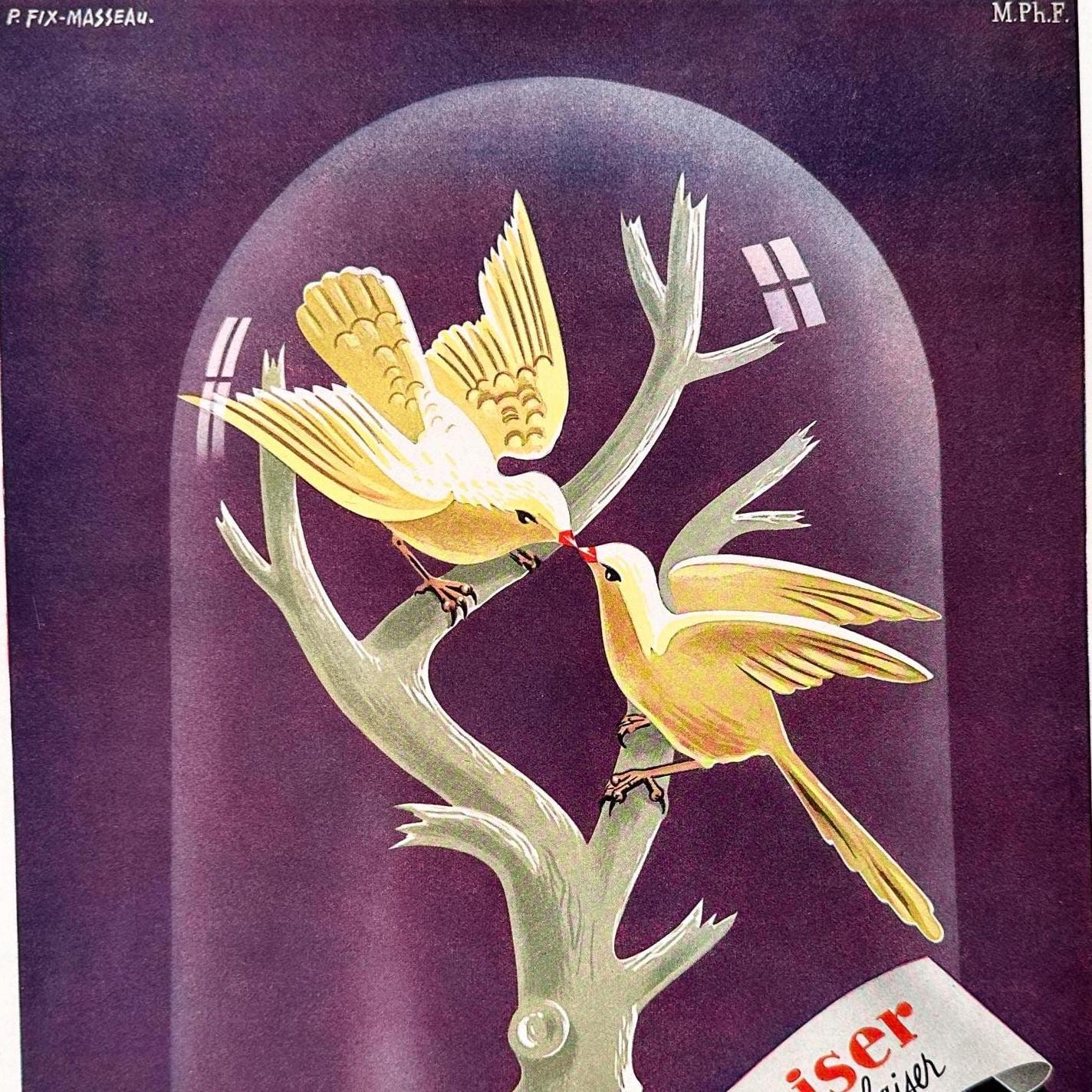 A full page of French make-up rare vintage advertisement, published during period of 1843-1955 years. Signed by Illustrator Pierre Fix-Masseau. This advertisement is highly collectible and becoming more rare and difficult to find. This original poster was taken carefully from the authentic vintage French illustrated magazine. This ad is not a reproduction or modern re-print, the publisher name and date are printed at the top of the ad.