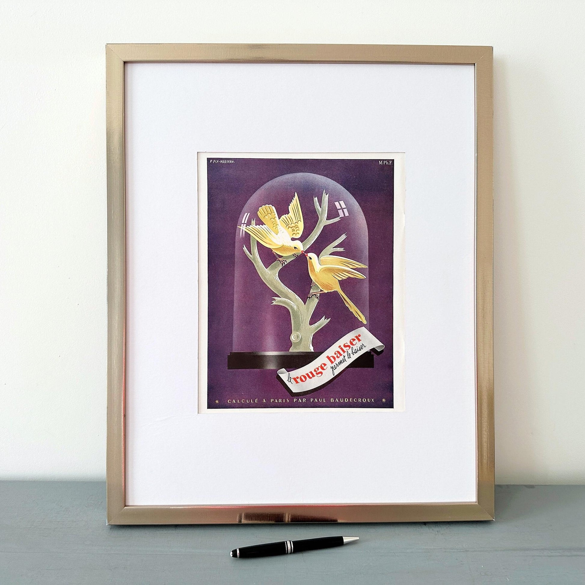 Red Lipstick Poster, Rare Authentic Print, French Vogue Print, Fashion Wall Art, Vintage Make Up, Beauty Advertisement, French Chic Poster, Two Doves Poster, Luxury Brand Poster, French Cosmetics Ad, Mid Century Modern, Girl Gallery Wall, Powder Room Poster, France4you