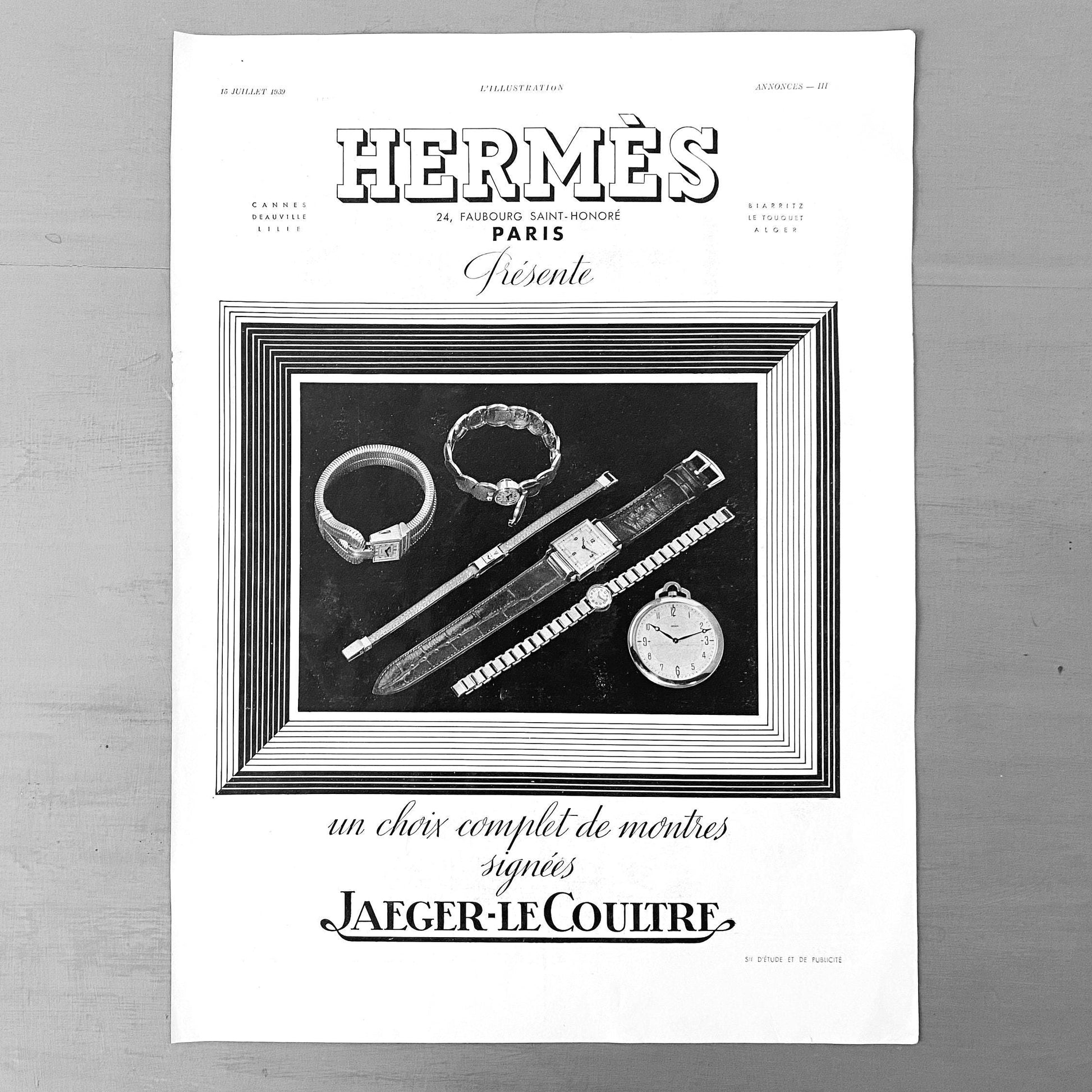 Vintage Hermes Print, Rare Authentic Print, French Advertisement, Hermes Lover Gift, Jaeger Lecoultre Watch, Hermes Illustration, Glam Room Decor, Thinking of You Gift, French Home Decor, Swiss Watch Poster, Glamour Wall Art, Hermes Retro Print, Designer Brand Lover, France4you