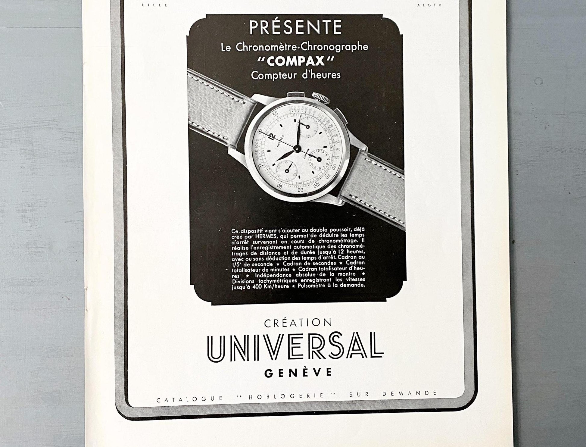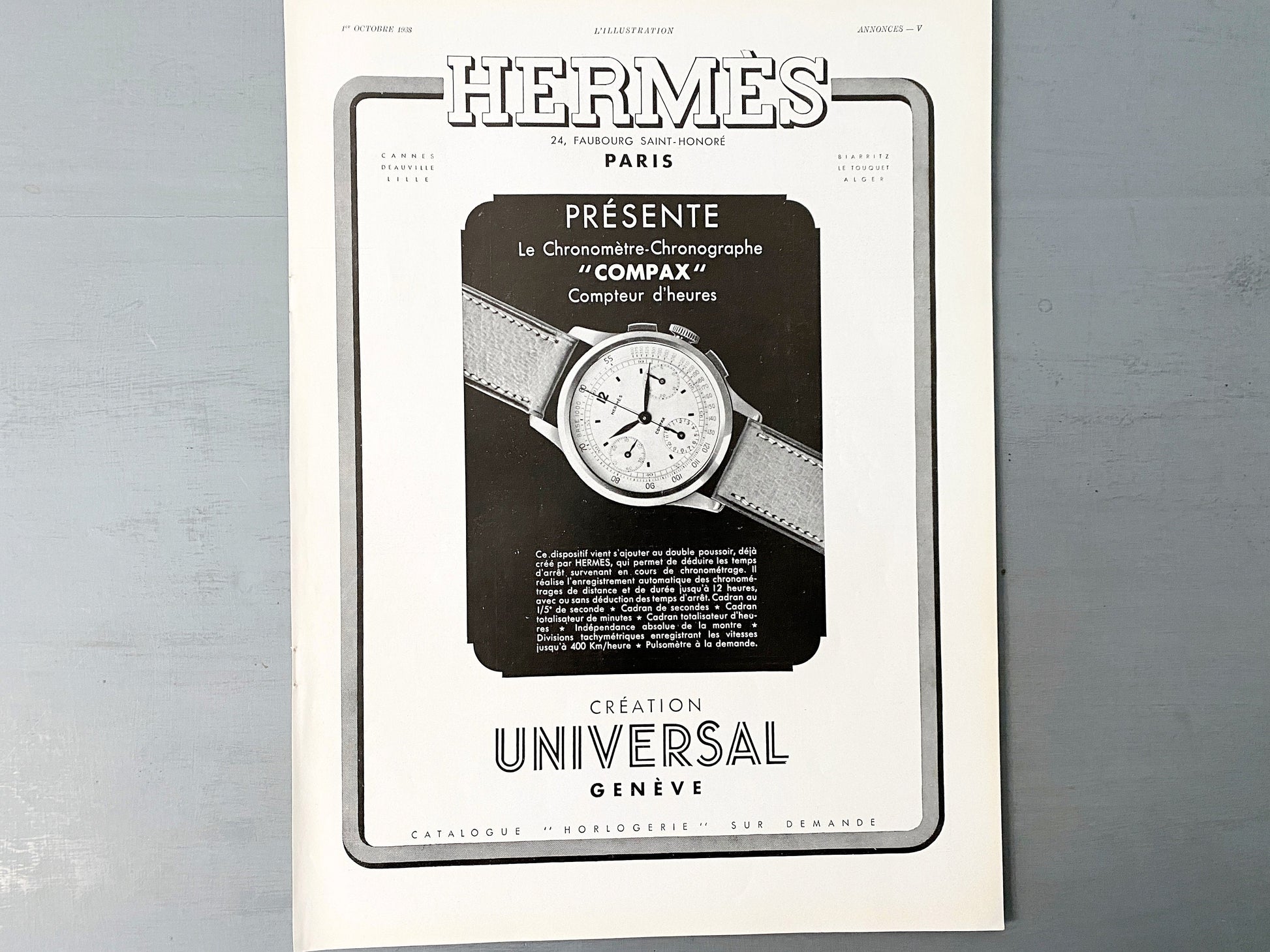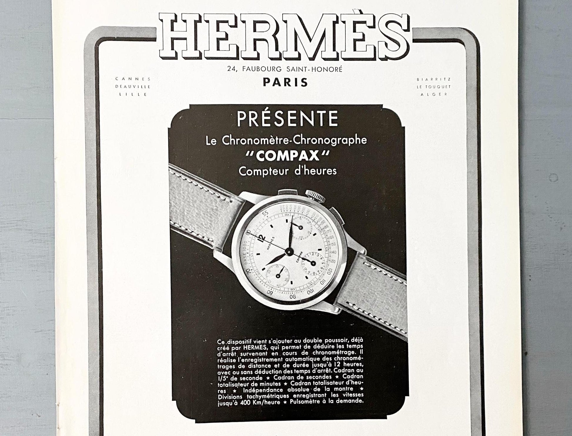 Authentic 1930s Vintage Hermes Watch Ad Print: Original French Luxury Poster