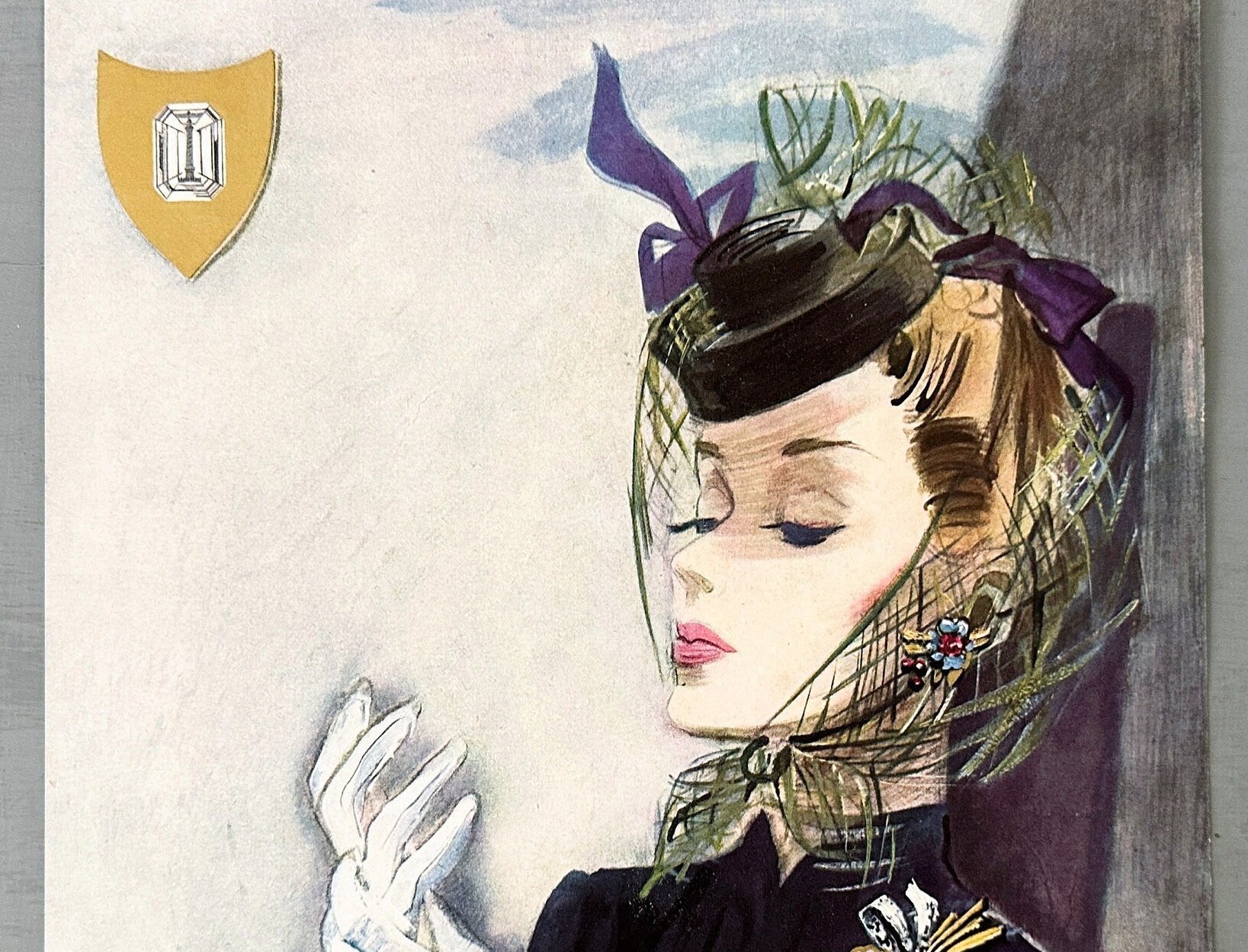 Authentic 1940s Vintage Boucheron Jewelry Ad Print: Signed Jacques Demachy, Paris Fashion