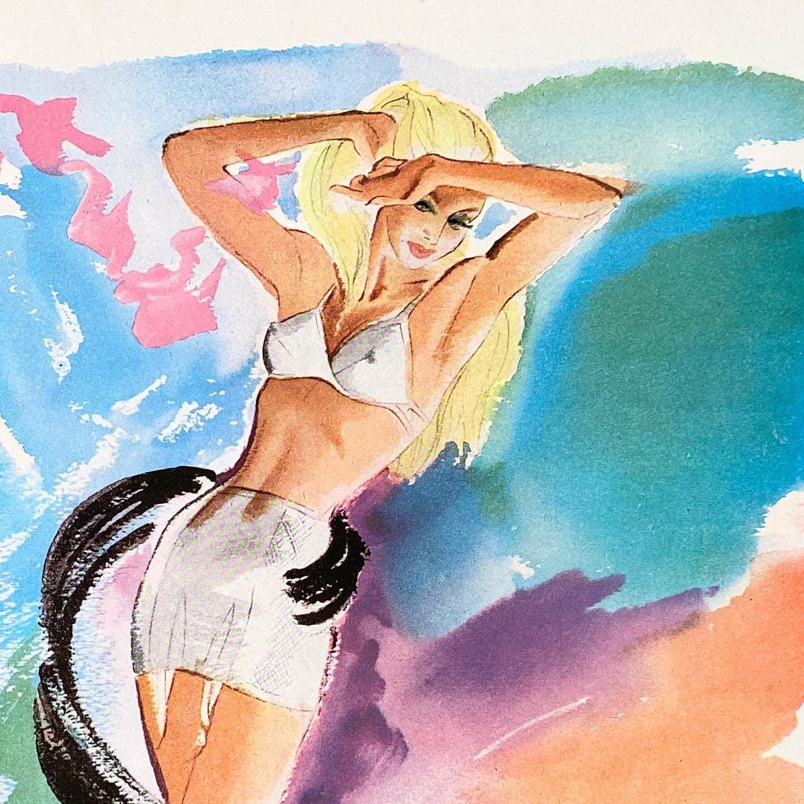 Retro Lingerie Print, French Pin up Girl, Boheme Wall Art, Rare Authentic Print, Mid Century Modern, Vintage Wall Art, Bedroom Wall Decor, Retro Advertisement, Glam Room Poster, French Fashion Print, Louis Delmotte Print, Blond Girl Wall Art, Scandale Wall Decor, France4you