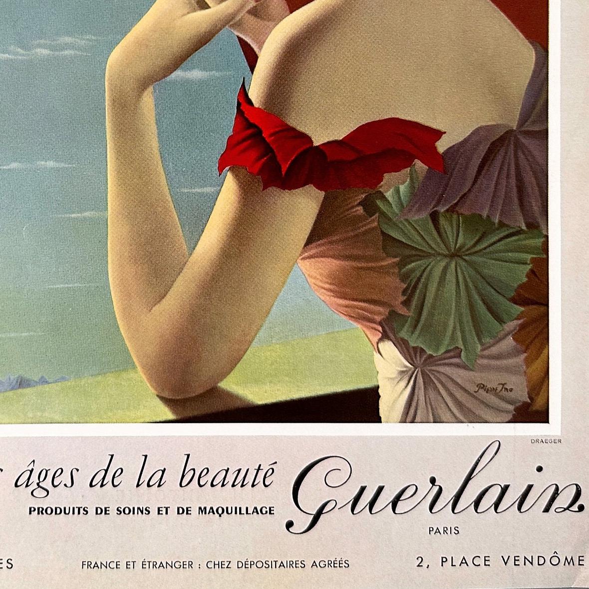 A full page of rare vintage Guerlain make-up advertisement page, published during period of 1843-1955 years. Signed by Illustrator Pierre Ino. This advertisement is highly collectible and becoming more rare and difficult to find. This original poster was taken carefully from the authentic vintage French illustrated magazine.