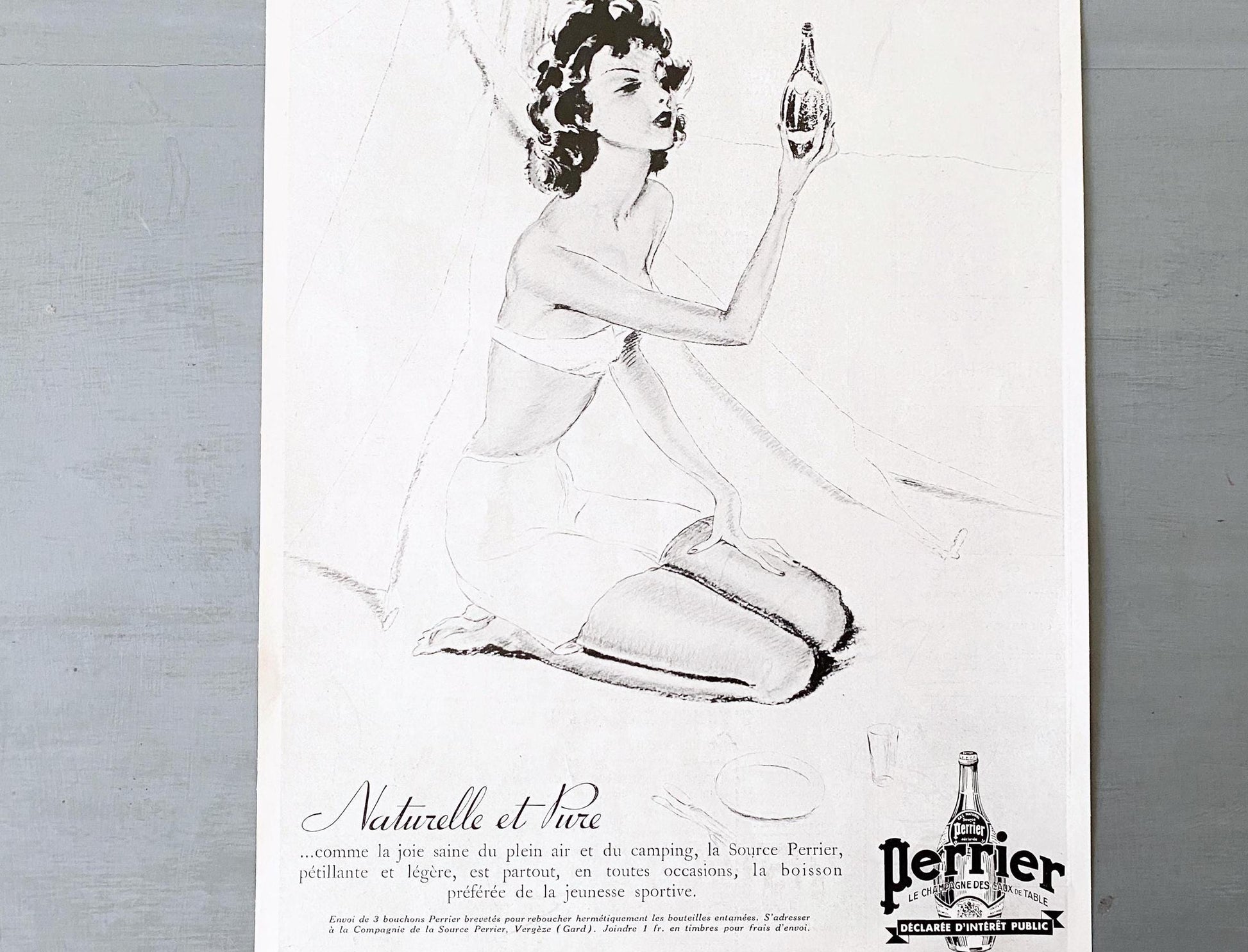 Authentic 1950s Vintage Perrier Ad Poster: Rare French Mineral Water Print, Mid-Century Wall Art
