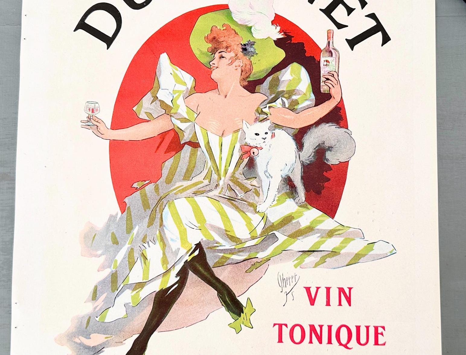 Alcohol Ad Poster, Retro Style Wall Art, Vintage Home Decor, Belle Epoque Print, Art Nouveau Decor, French Advertisement, Unique Gift Idea, Cabaret Woman Poster, Original Wall Art, Dubonnet Aperitif Ad, Cocktail Lover Gift, Retro Kitchen Decor, Cat Wall Print, France4you
