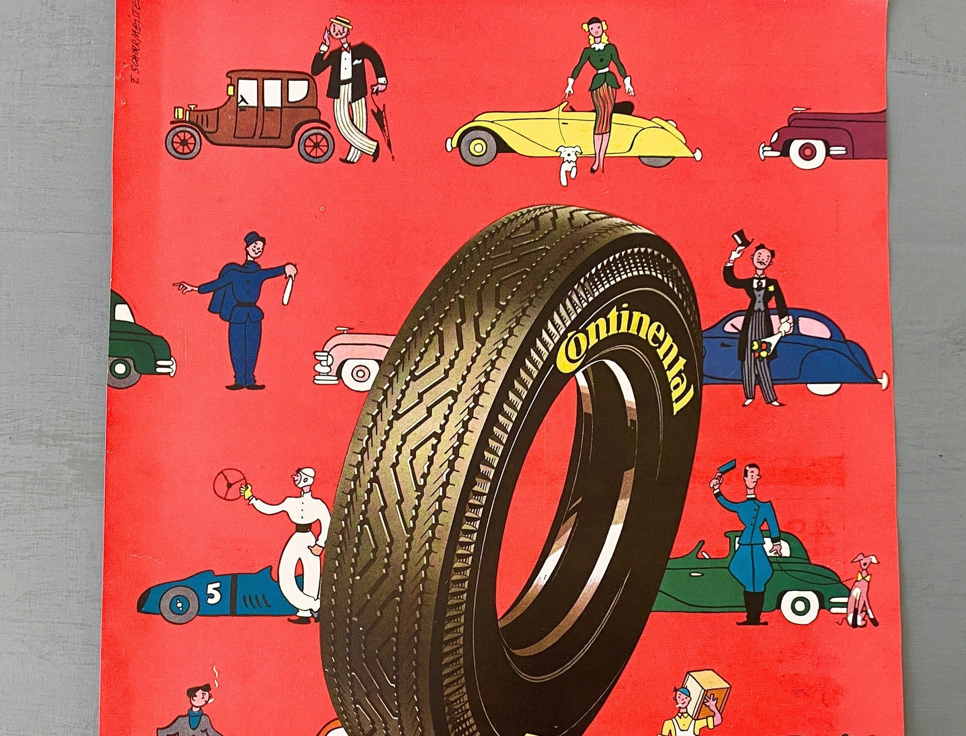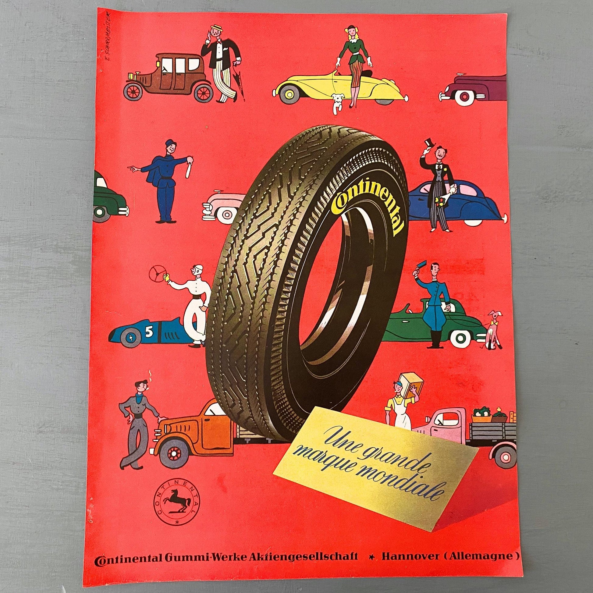 Continental Tyres, Retro Style Poster, French Wall Decor, Vintage Auto Poster, Gift for Car Lovers, Mid Century Modern, Automotive Retro Art, Rare Authentic Print, Classic Cars Poster, Men Birthday Gift, Garage Wall Art, Ready to Frame Art, Red Wall Decor, French Advertisement, France4you