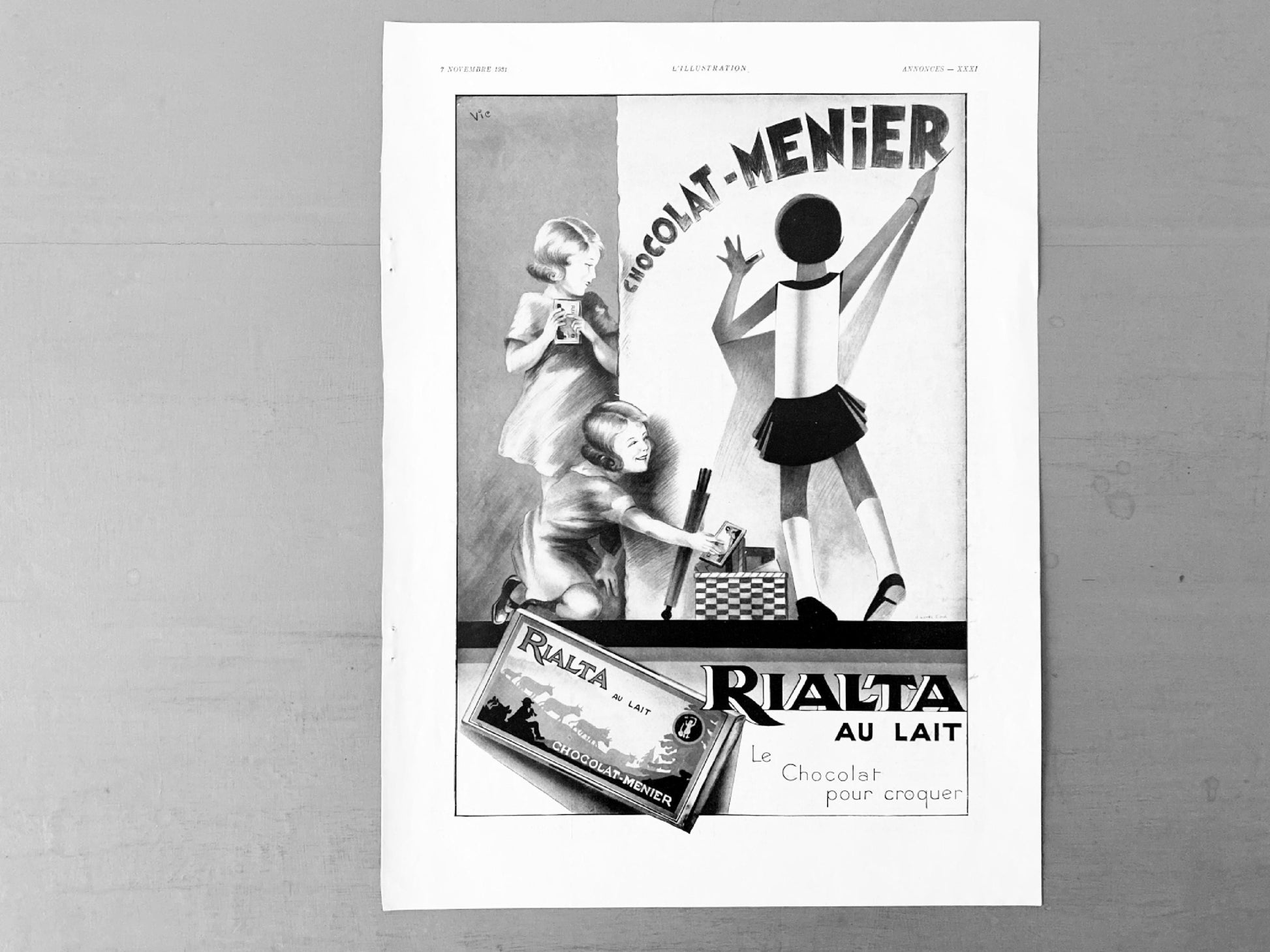 A full page of rare vintage chocolate Menier advertisement poster, published during period of 1843-1955 years. This advertisement is highly collectible and becoming more rare and difficult to find. This original poster was taken carefully from the authentic vintage French illustrated magazine. This ad is not a reproduction or modern re-print, the publisher name and date are printed at the top of the ad.