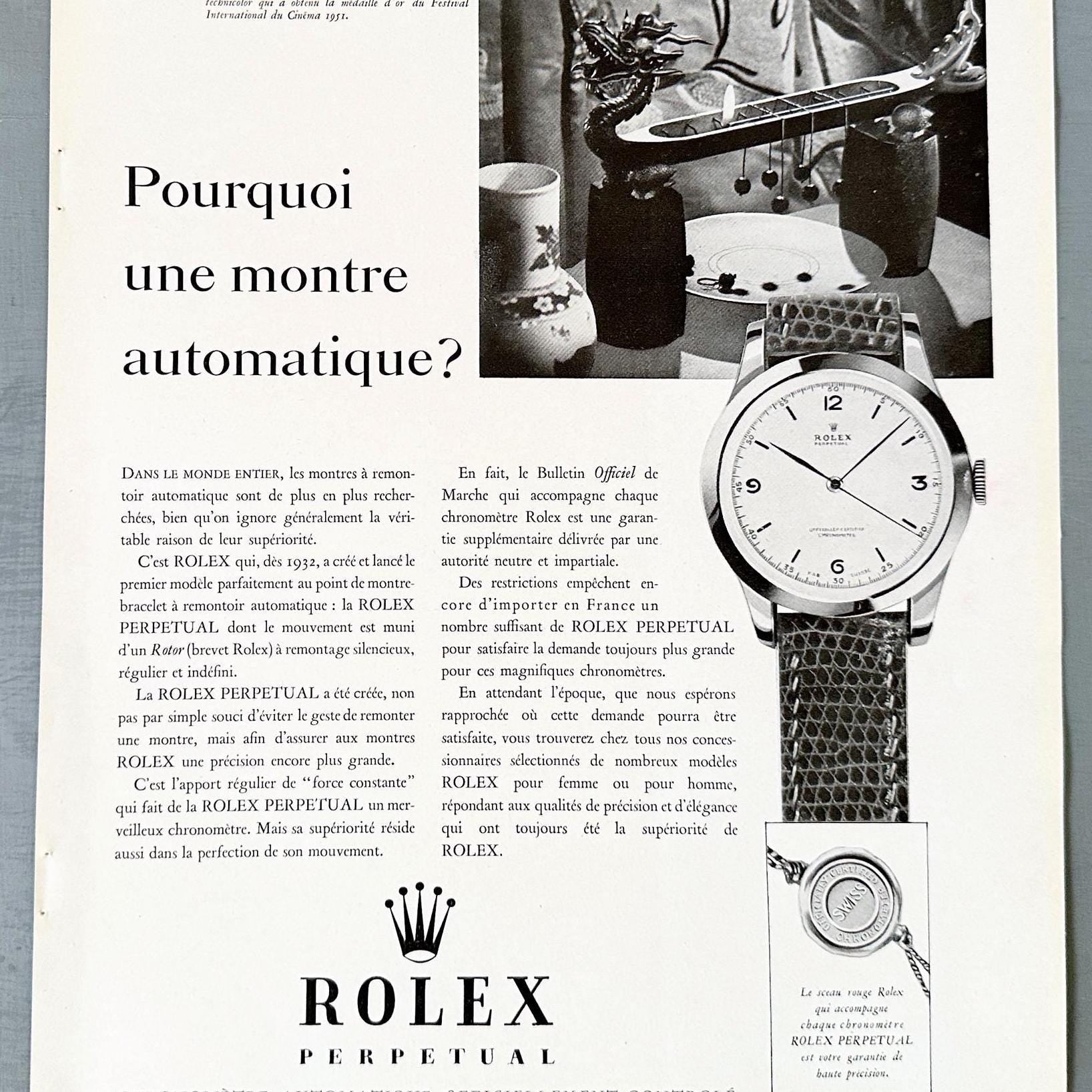 Rolex Watch Poster, Rare Authentic Print, Mid Century Poster, Watch Collector Gift, Switzerland Watch, French Wall Decor, Black and White Ad, Best Vintage Gift, Luxury Brand Poster, Boyfriend Gift, Swiss Watch Ad Print, Rolex Perpetual Print, French Advertisement, France4you