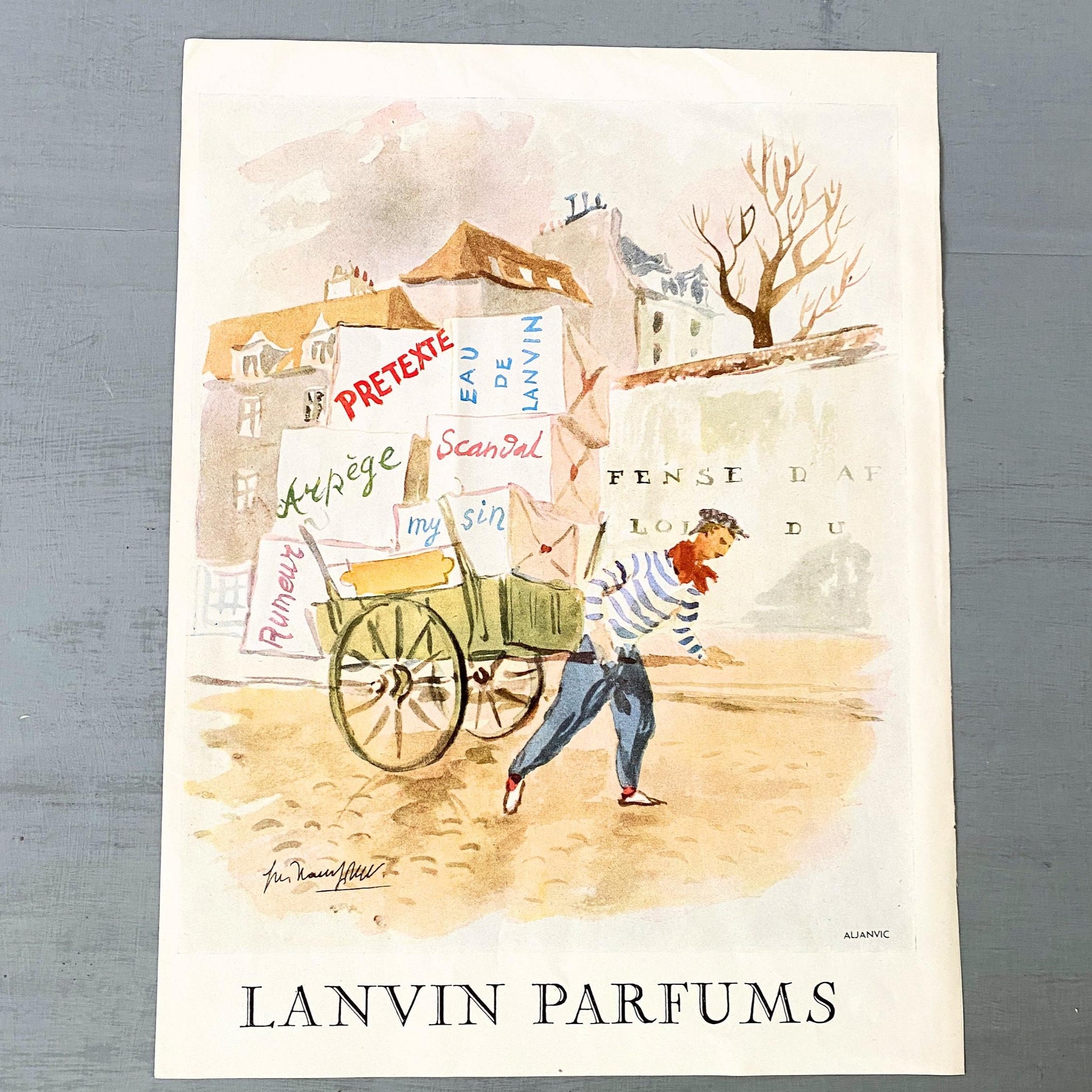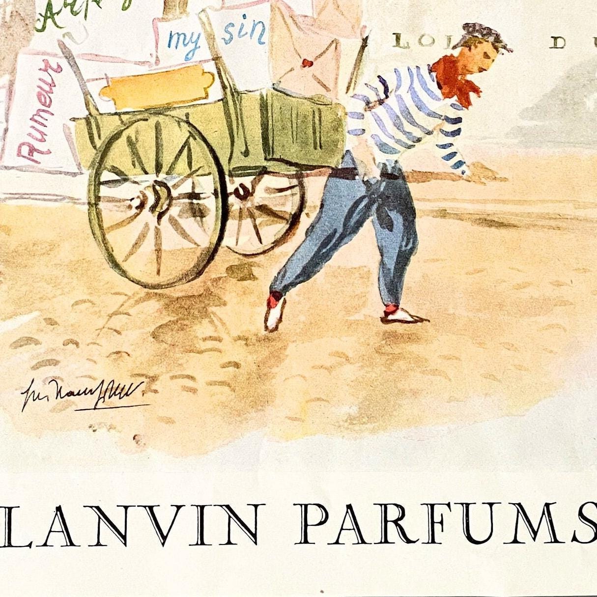 Original 1950s Vintage Lanvin Perfume Ad Wall Art Print: Paris Perfume Poster