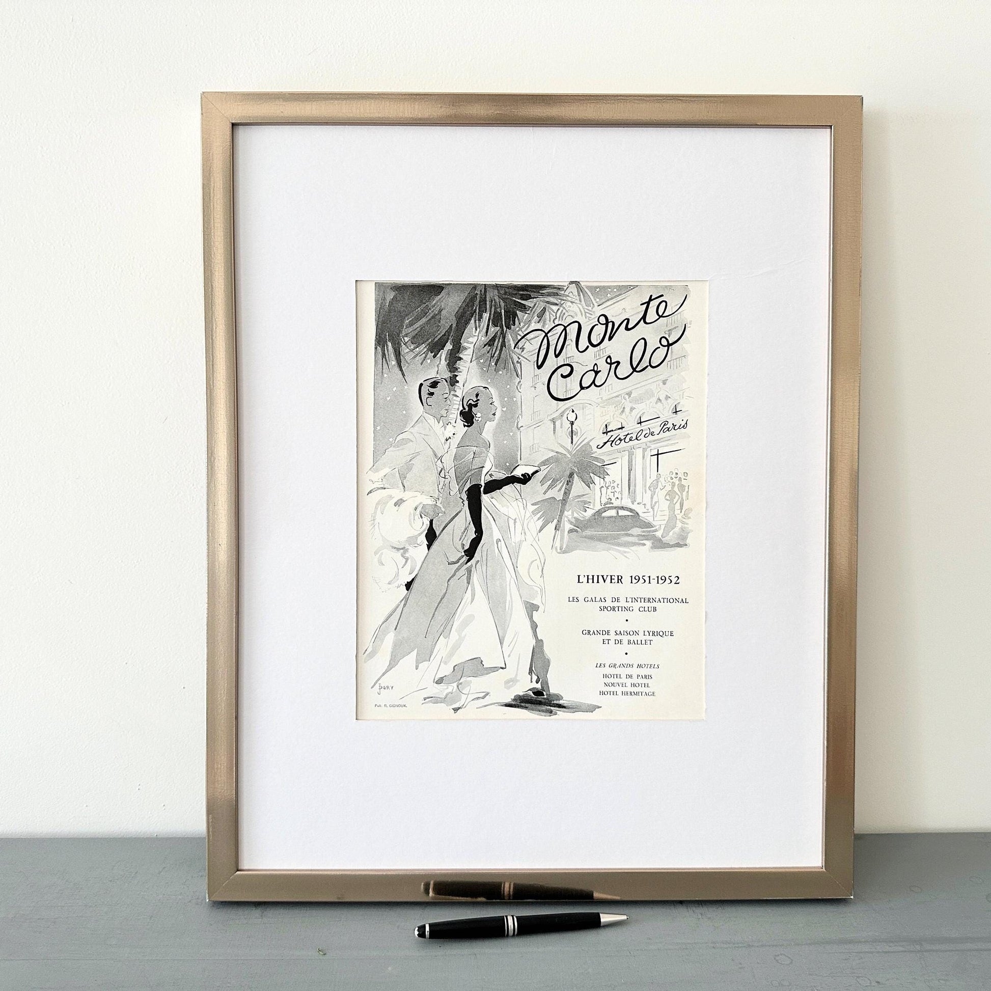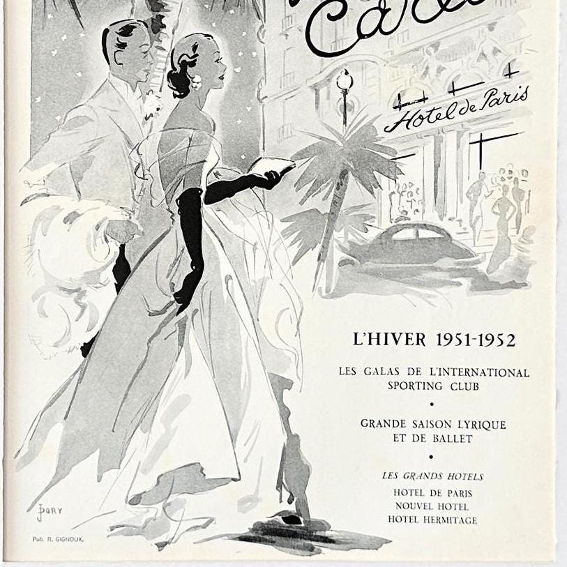 A full page of Monte Carlo rare vintage advertisement poster, published during period of 1843-1955 years. Signed by IllustratorJ. Dory. This advertisement is highly collectible and becoming more rare and difficult to find. This original poster was taken carefully from the authentic vintage French illustrated magazine. This ad is not a reproduction or modern re-print, the publisher name and date are printed at the top of the ad.