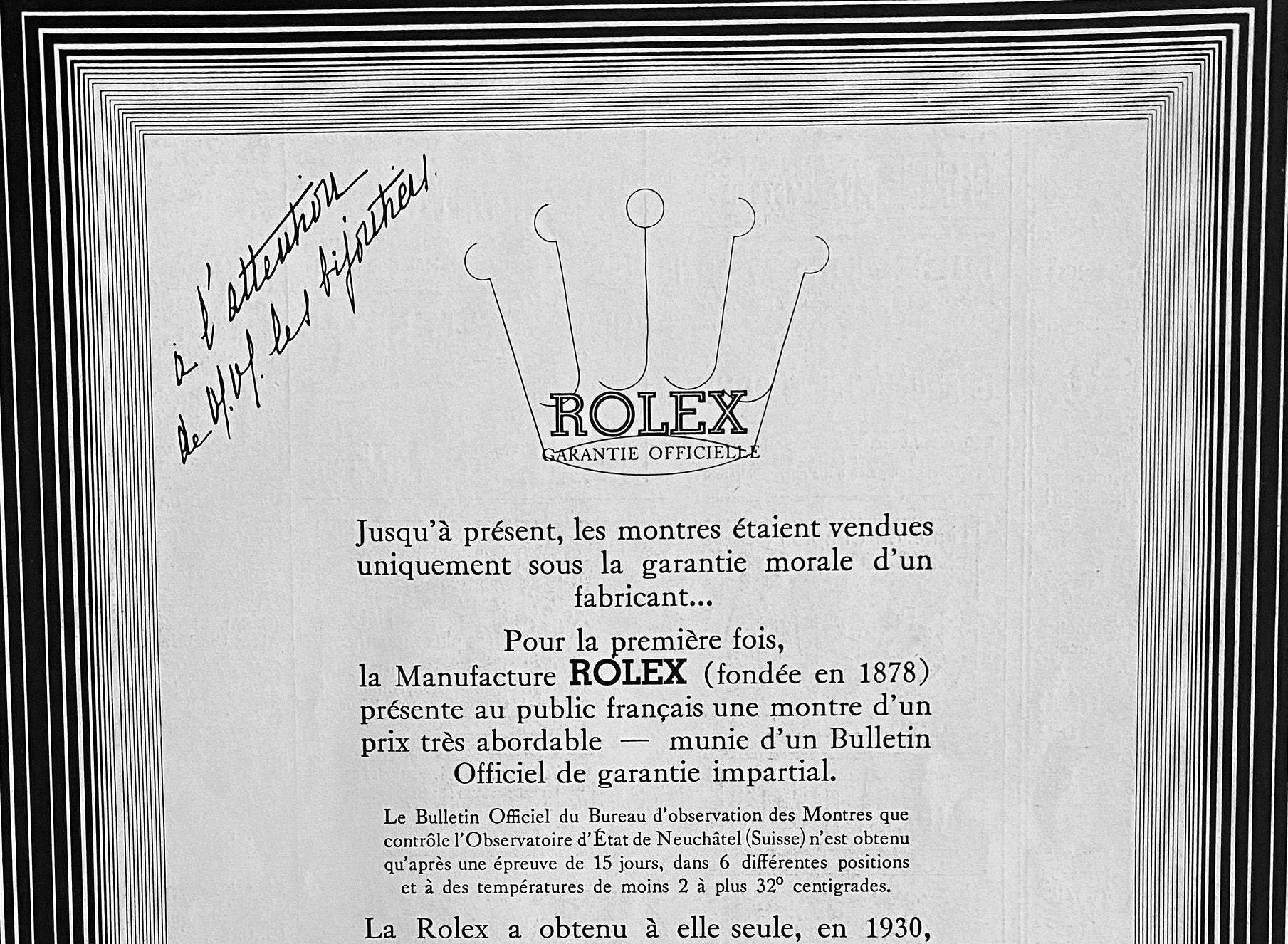A full page of rare vintage Rolex advertisement poster, published during period of 1843-1955 years. This advertisement is highly collectible and becoming more rare and difficult to find. This original poster was taken carefully from the authentic vintage French illustrated magazine. This ad is not a reproduction or modern re-print, the publisher name and date are printed at the top of the ad.