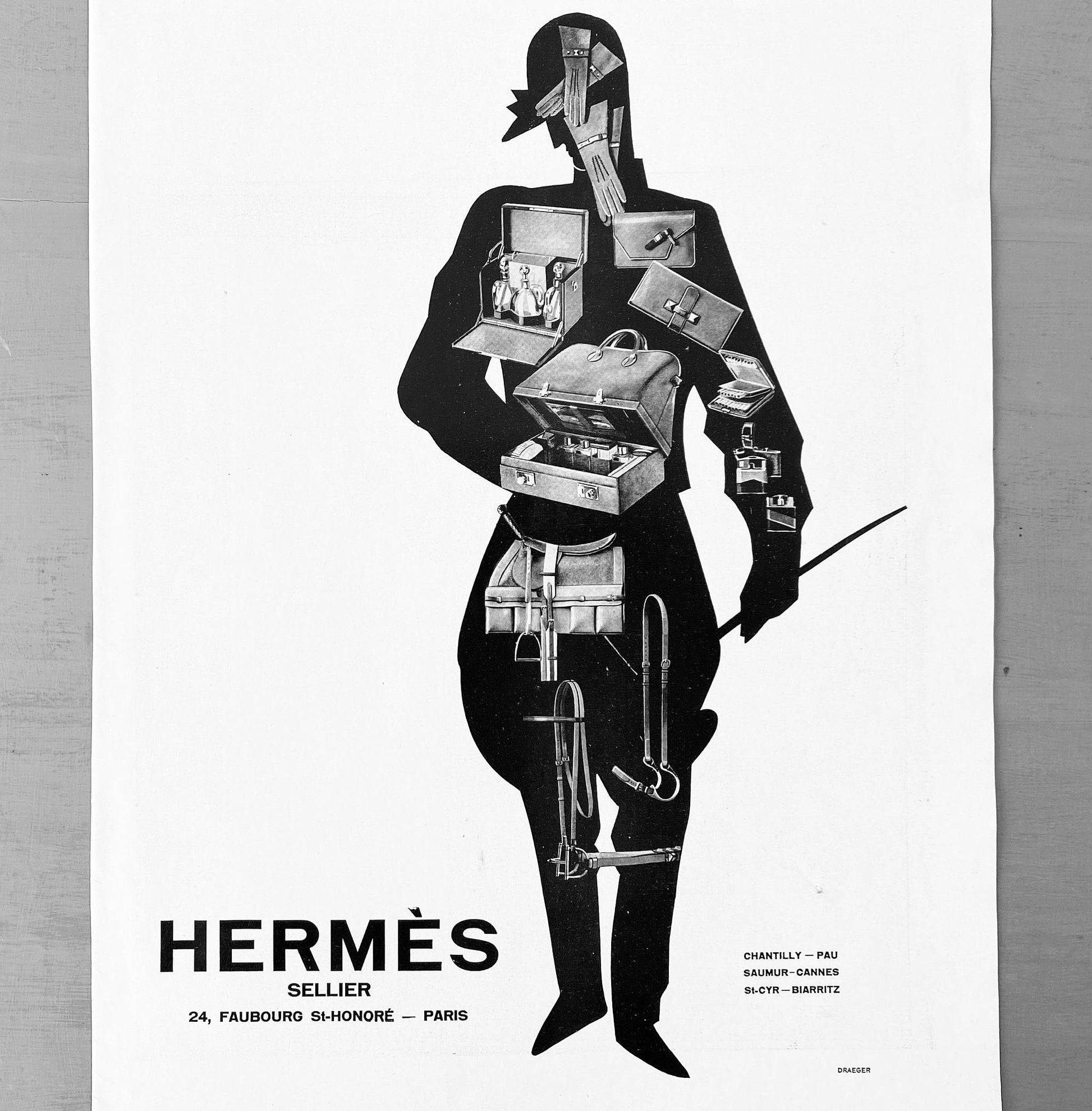 Rare Hermes Bag Advertisement Wall Art Poster, Highly Collectible Mid Century Modern Polo Man Print Gift for Hermes Lover Great to Frame