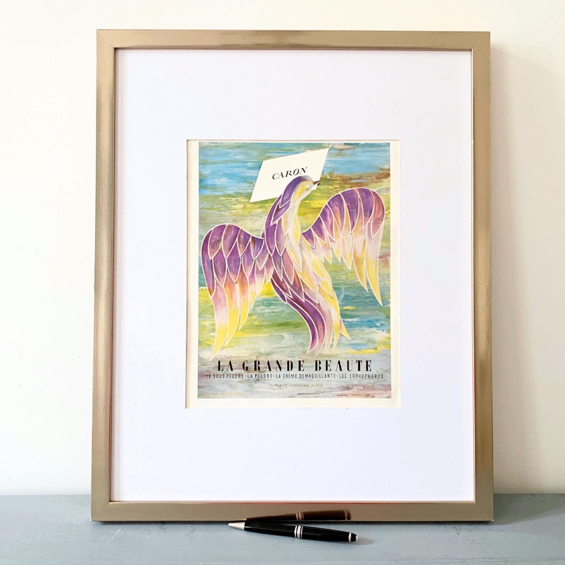 French Perfume Print, Rare Authentic Print, Boho Wall Art, Vintage Wall Art, Paris Style Decor, Bird Wall Art, Ready to Frame, Bathroom Wall Decor, French Vogue Poster, Glam Wall Gallery, Nostalgia Home Decor, Caron Perfume Ad, Unique Gift for Her, France4you
