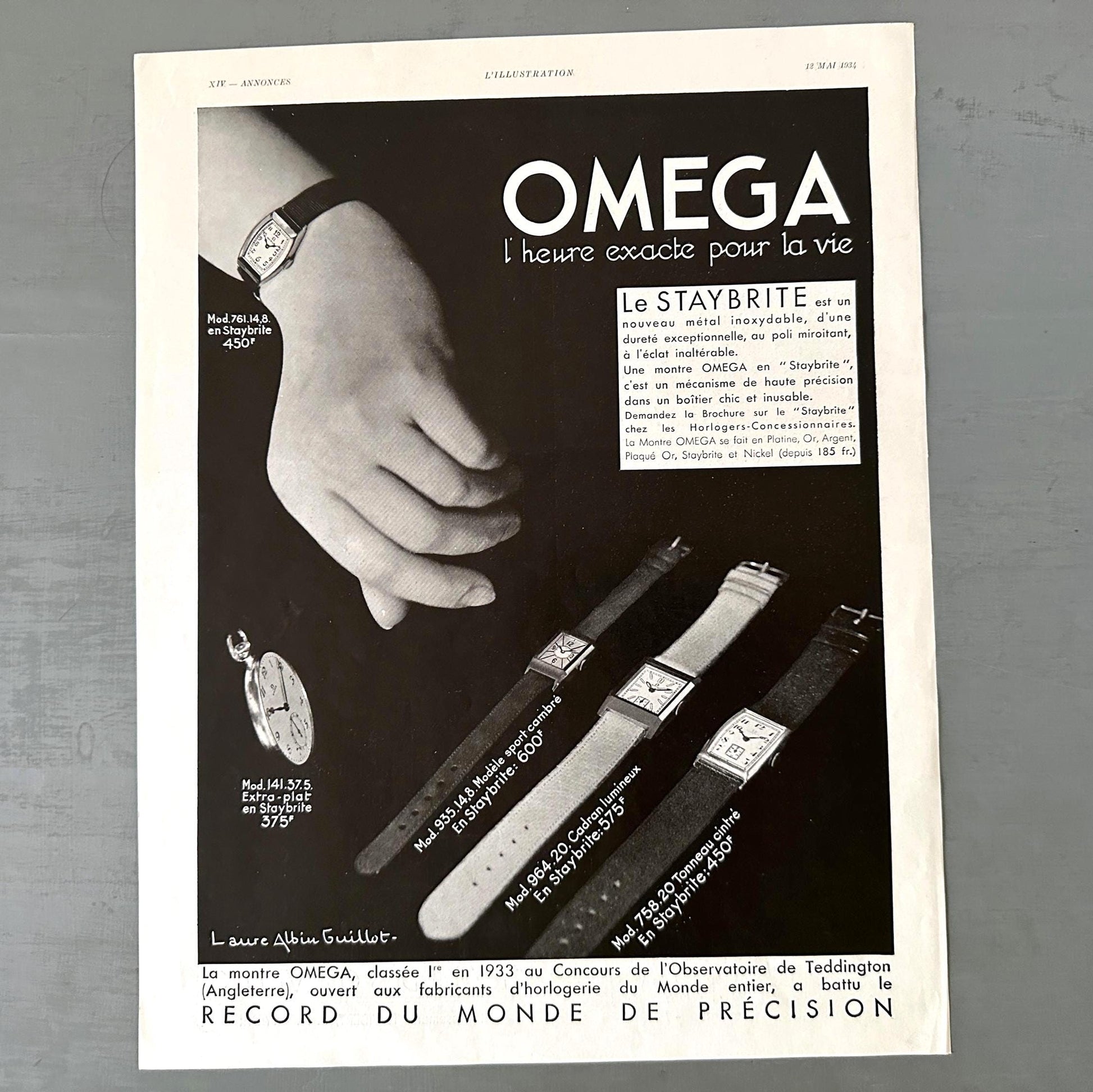 Vintage Omega Watch Ad Print: 1930s Swiss Mid-Century Wall Art