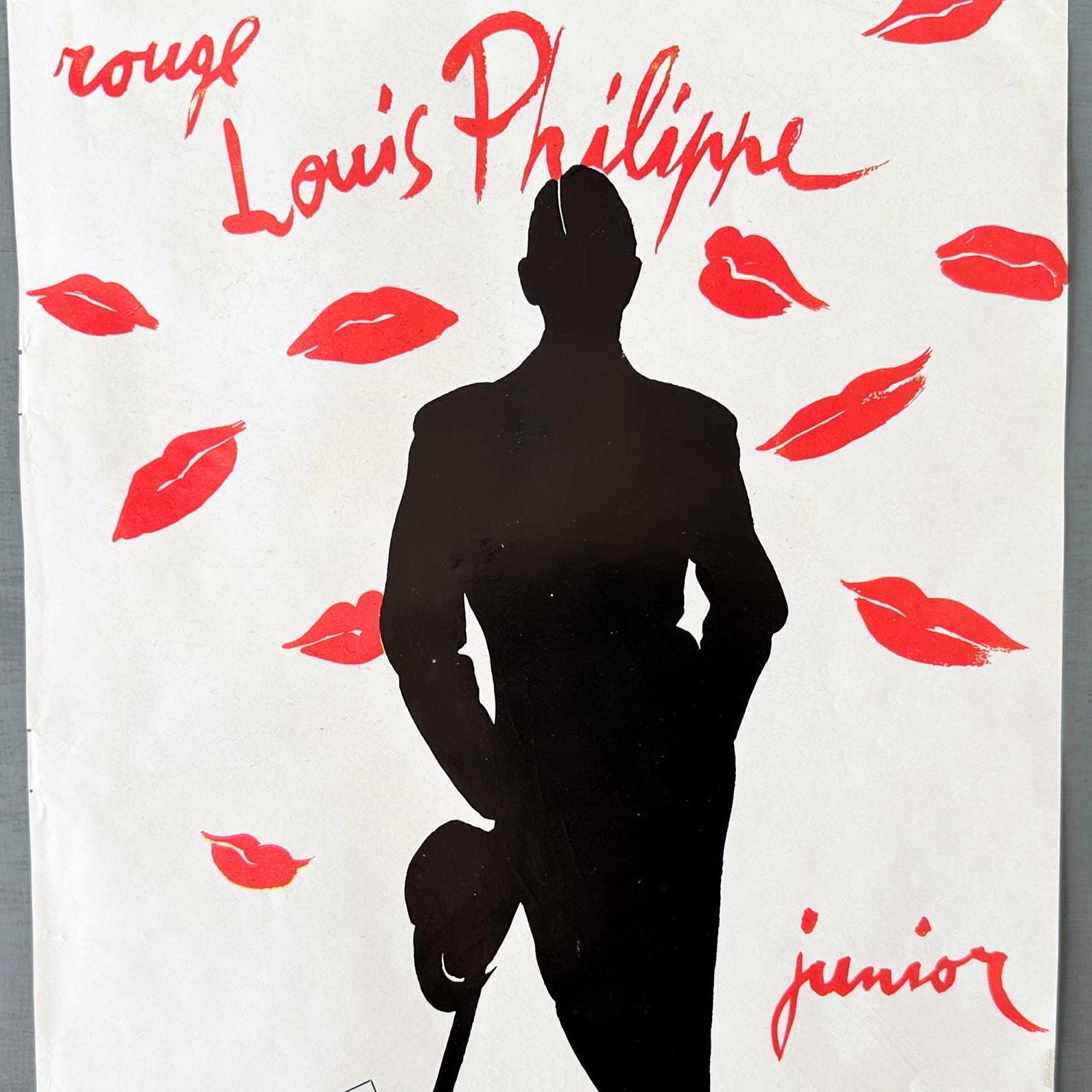 A full page of French red lipstick make-up rare vintage advertisement, published during period of 1843-1955 years. Signed by Rene Gruau. This advertisement is highly collectible and becoming more rare and difficult to find. This original poster was taken carefully from the authentic vintage French illustrated magazine. This ad is not a reproduction or modern re-print, the publisher name and date are printed at the top of the ad.